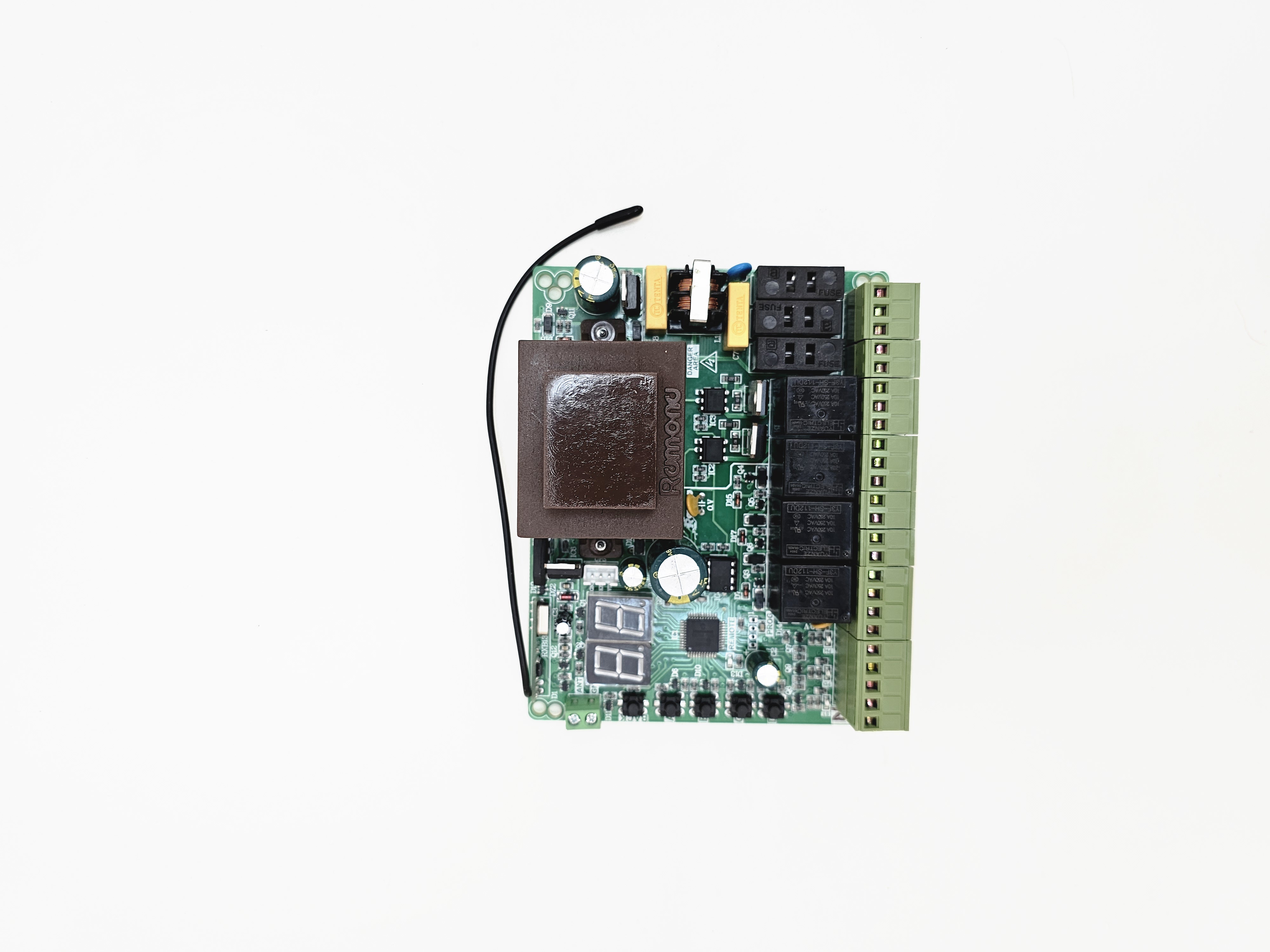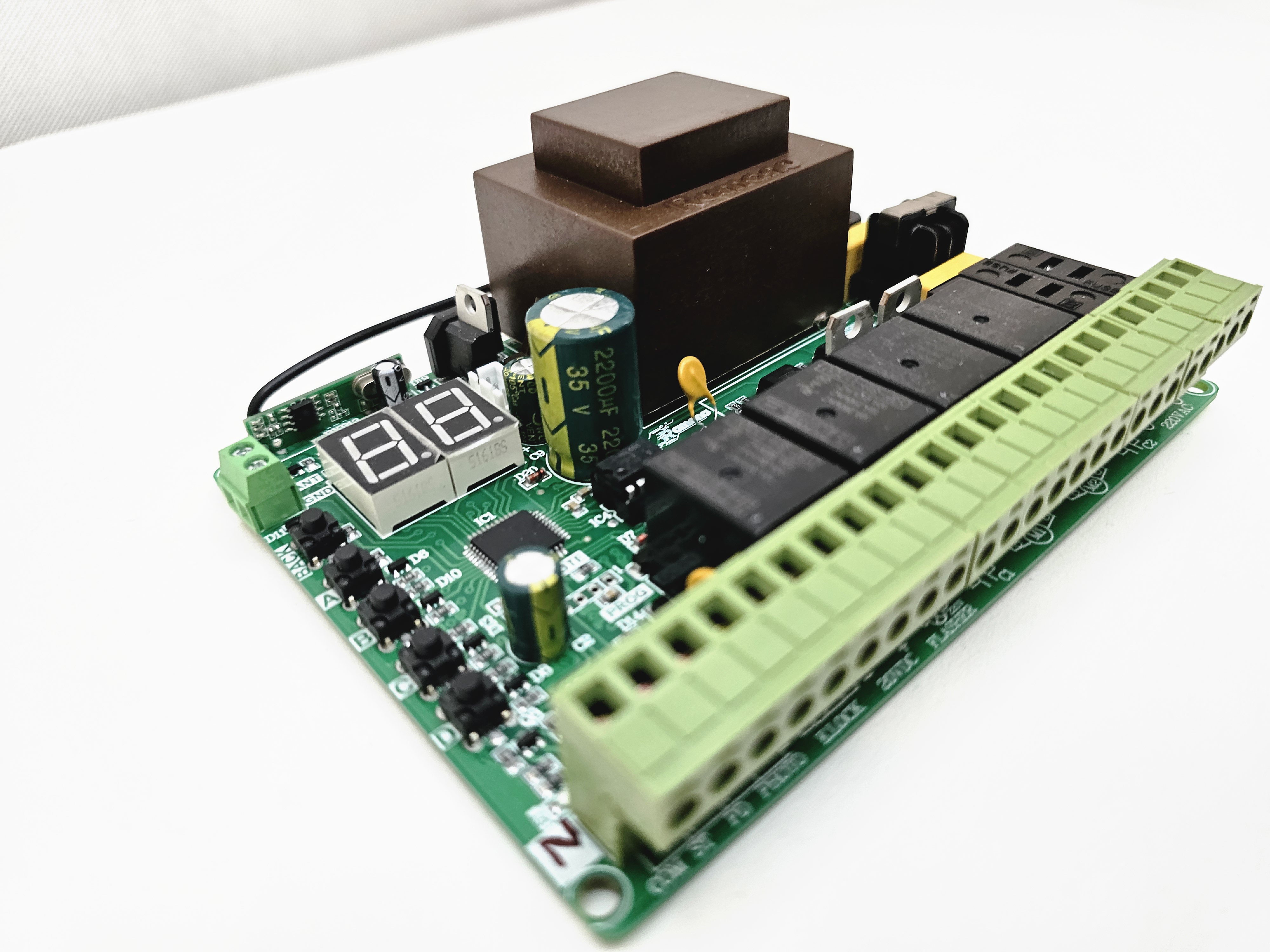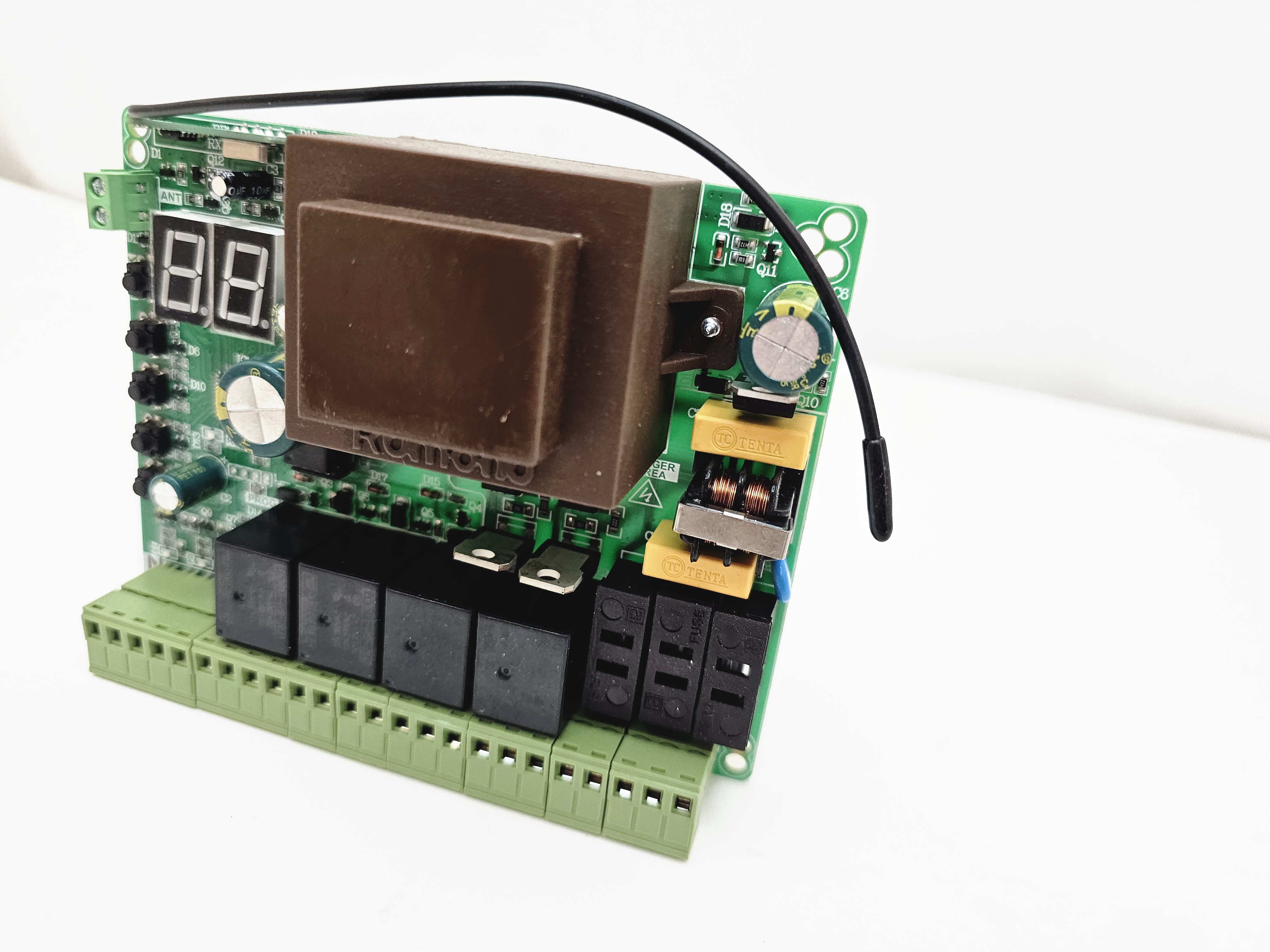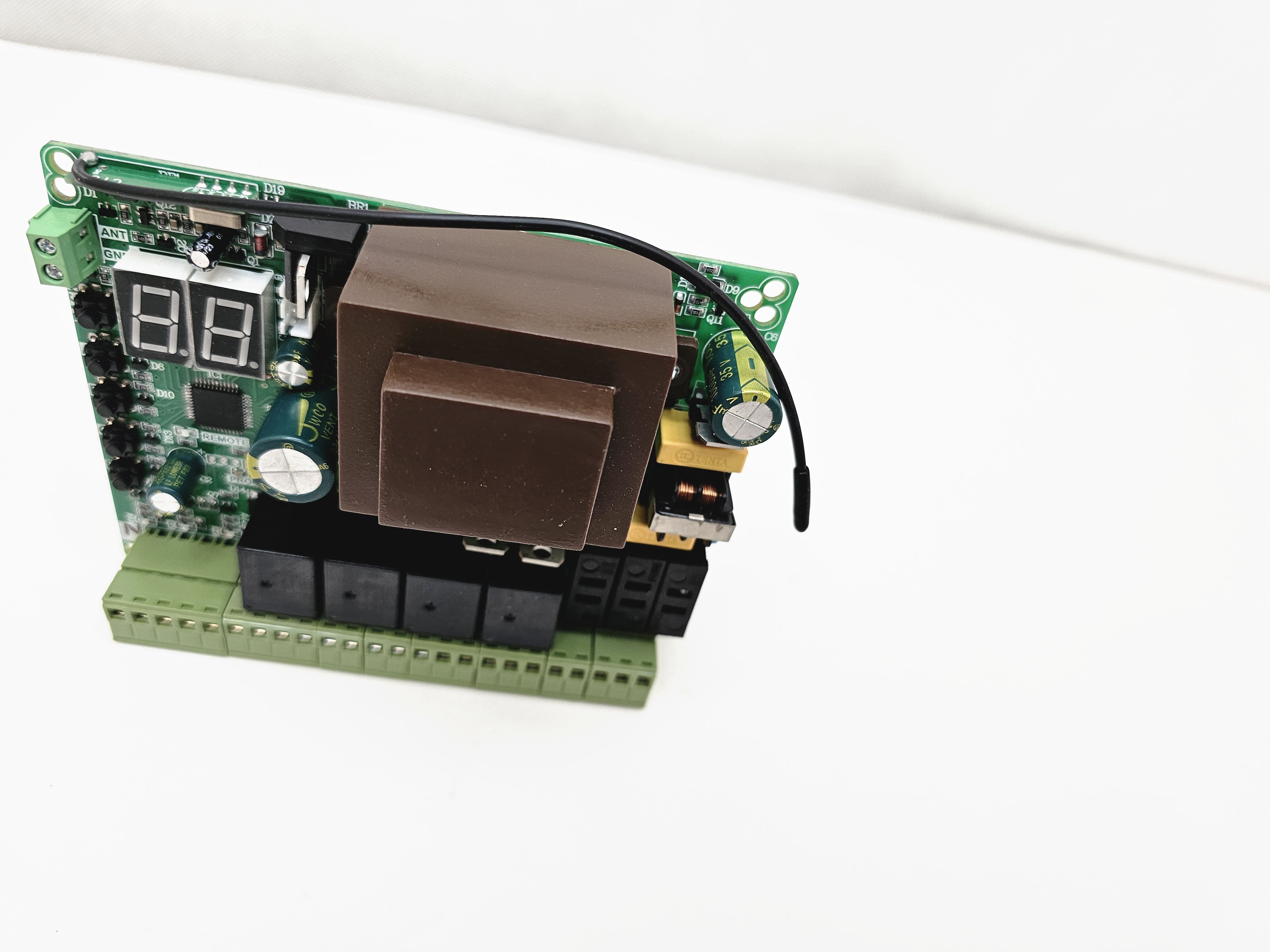 قابلیت ها: نمایشگر2رقمی و تنظیمات با دقت یک ثانیه. قابلیت بستن فرمانهای خارجی جهت جلوگیری ازنصب رسیور خارجی. قابلیت نمایش شماره ریموت و حذف ریموت خاص. حفاظت ولتاژ خروجی20ولت در برابر اتصال کوتاه برنامه ریزی مجزا برای درب دولنگه وتک لنگه. زمان بازشدن و بسته شدن بصورت مجزا از هم همراه استارت آرام(SoftStart). قابلیت لرن کردن36عددریموت کدلرنینگ وهاپینگ کدهمزمان. قابلیت تنظیم سه سرعت برای هر لنگه به صورت مجزا. قابلیت حرکت جکها به صورت مجزا از هم توسط ریموت به جای خالص کردن جک. تست چشمی قبل از حرکت.